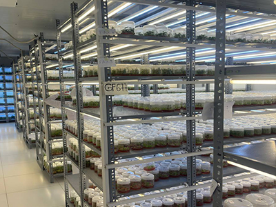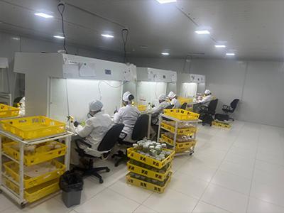 Laboratoriyada 13 ta 180 sm hajmli laminar oqim kabinalari, 600 l avtoklav, 20 tonna/kun quvvatga ega teskari osmosli tozalash tizimi, 3 gektarlik issiqxona mavjud.